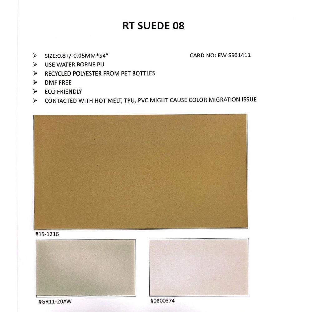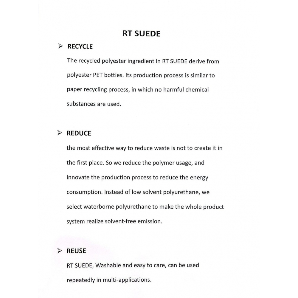 市場最新且少見的雙面水性絨面,採用全水性製程取代傳統溶劑,在保持優異手感與結構強度的同時,有效降低環境負擔;同時具備成熟且穩定的量產能力,是品牌導入此類材料時值得信賴的選擇。